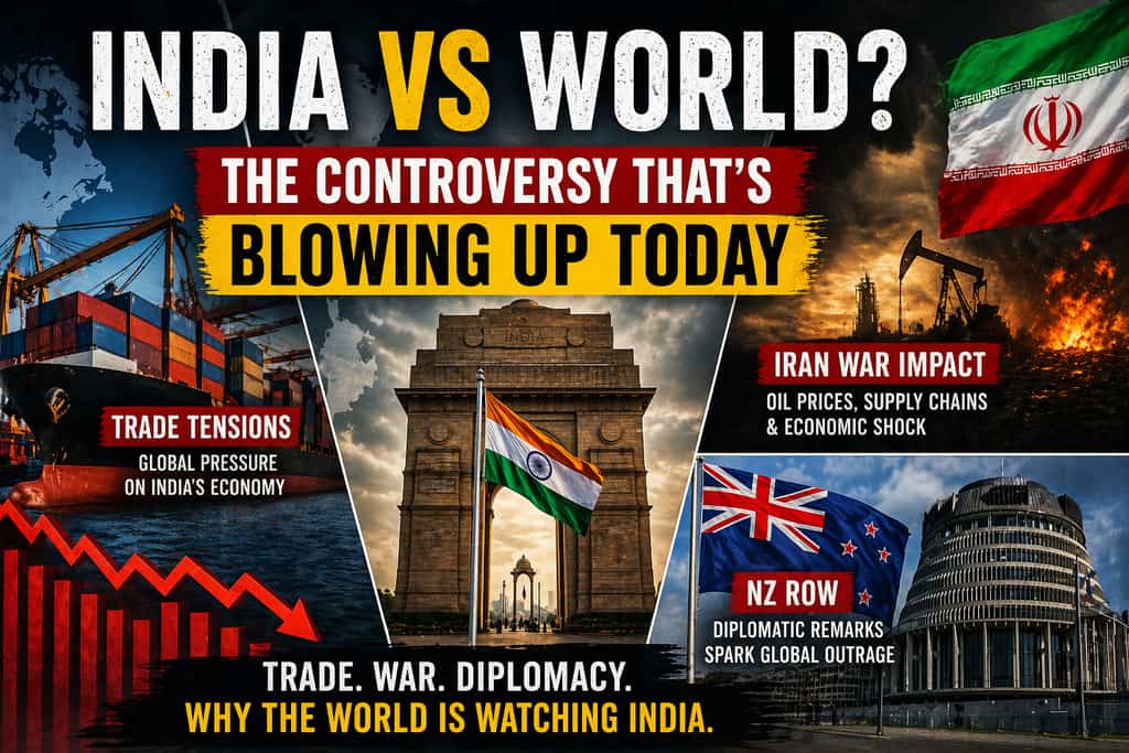 The “India vs world controversy” refers to multiple global tensions involving India, including trade disruptions from the Iran war, diplomatic friction with New Zealand, and economic pressures impacting supply chains. These overlapping issues have created a perception of India facing increased global scrutiny across diplomacy and trade simultaneously.